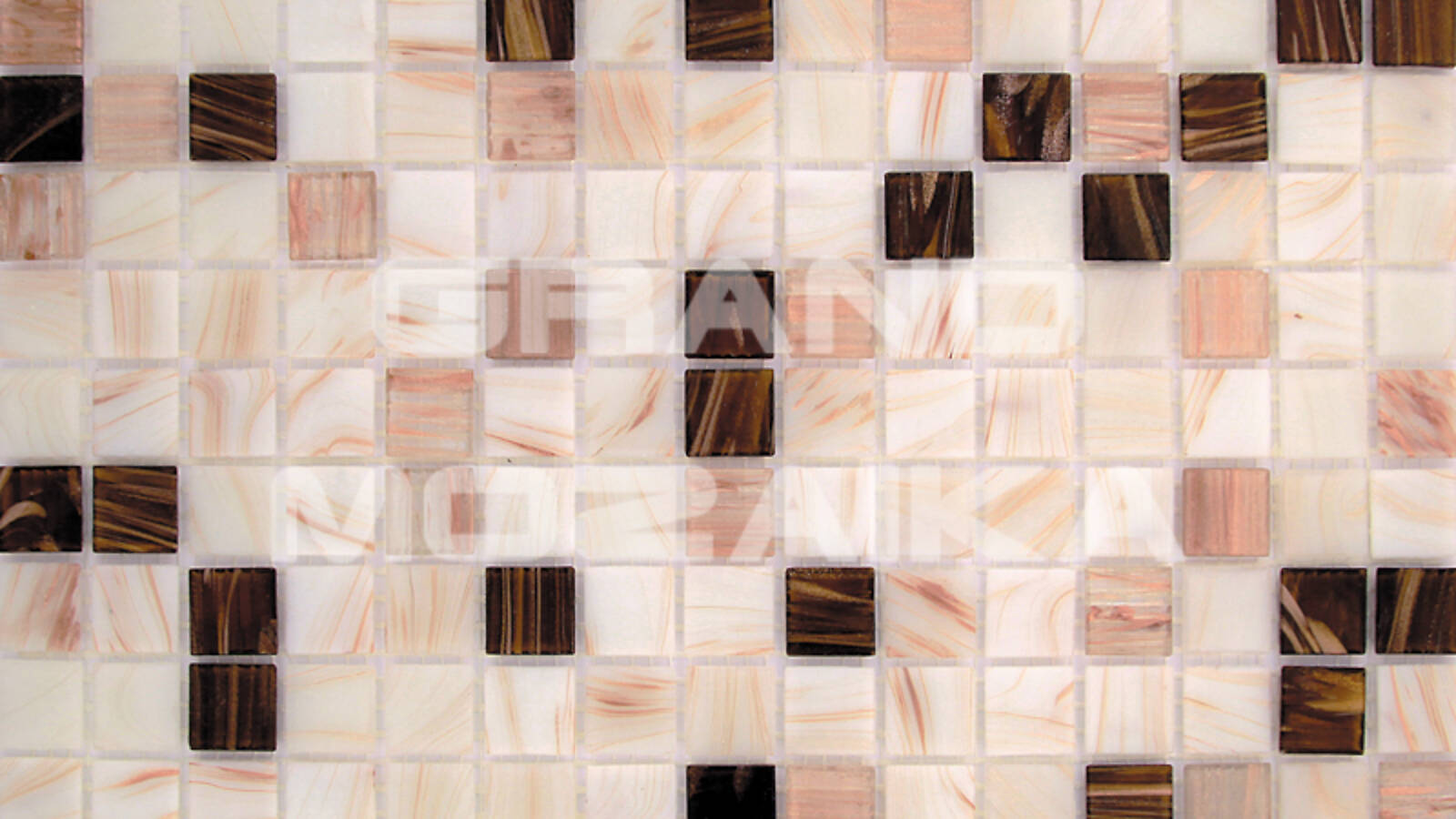 Стеклянная мозаика, серия Alma Pool (на сетке), цвет: бежевый, коричневый, размер чипа (мм): 20x20