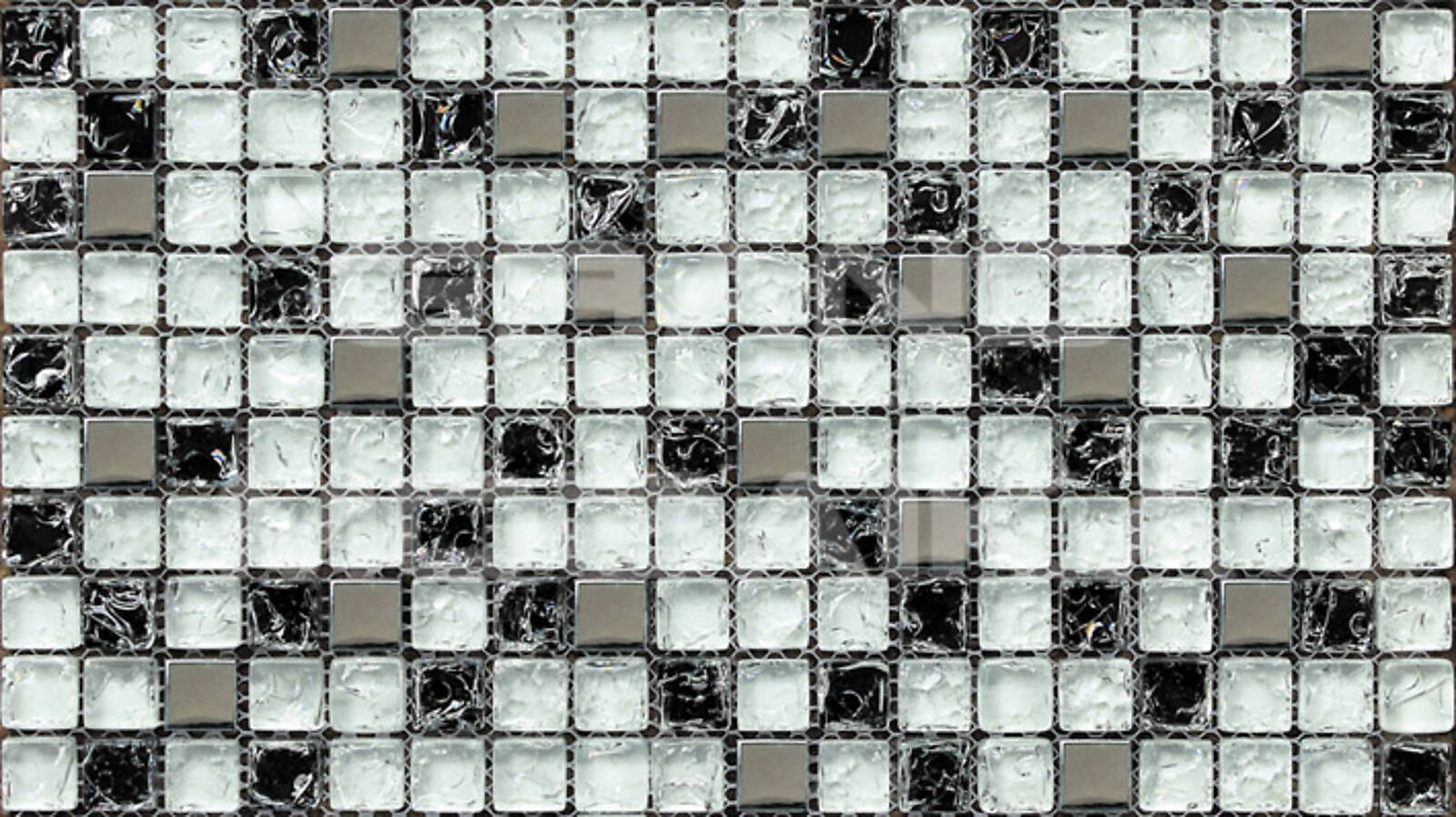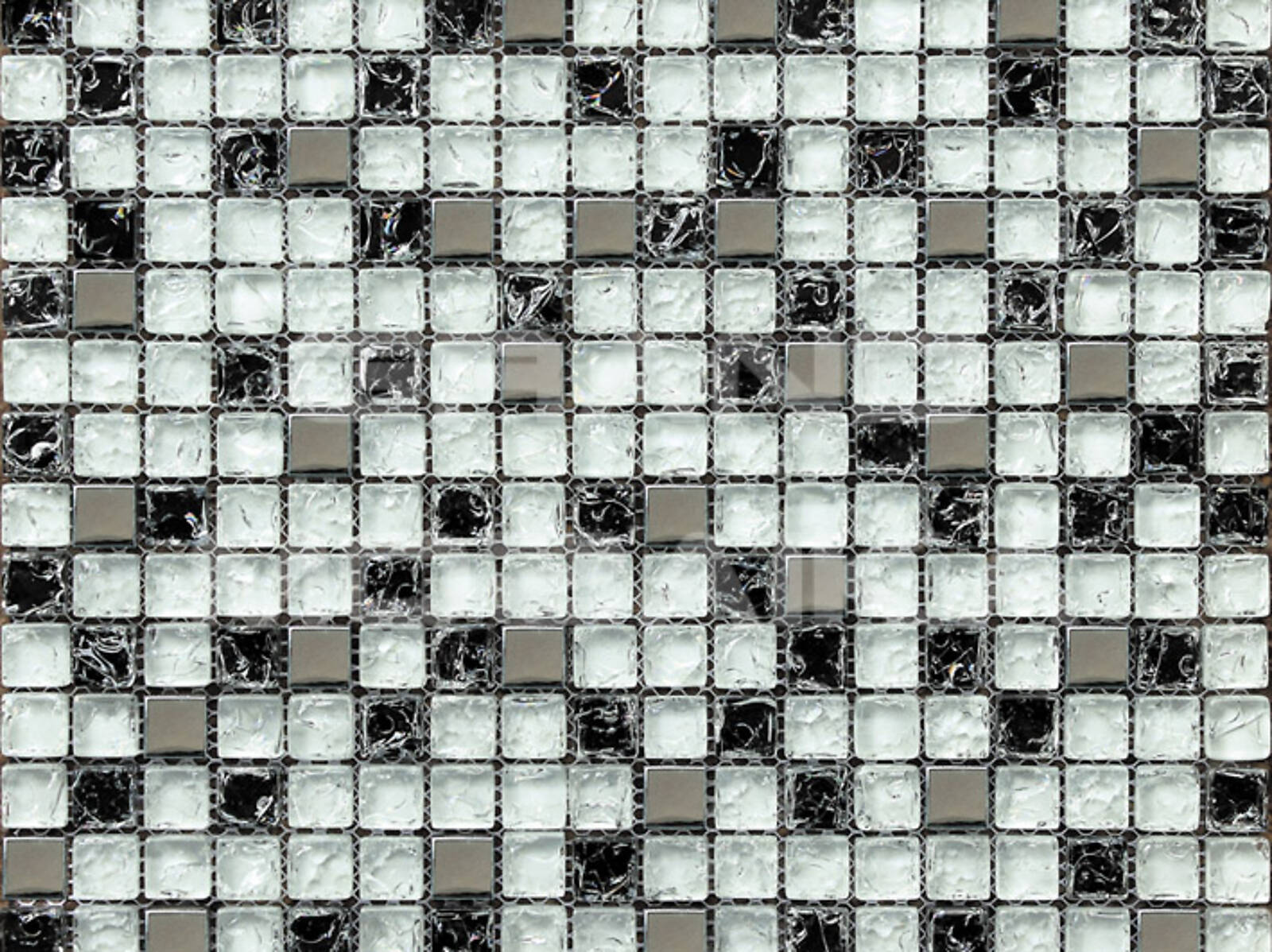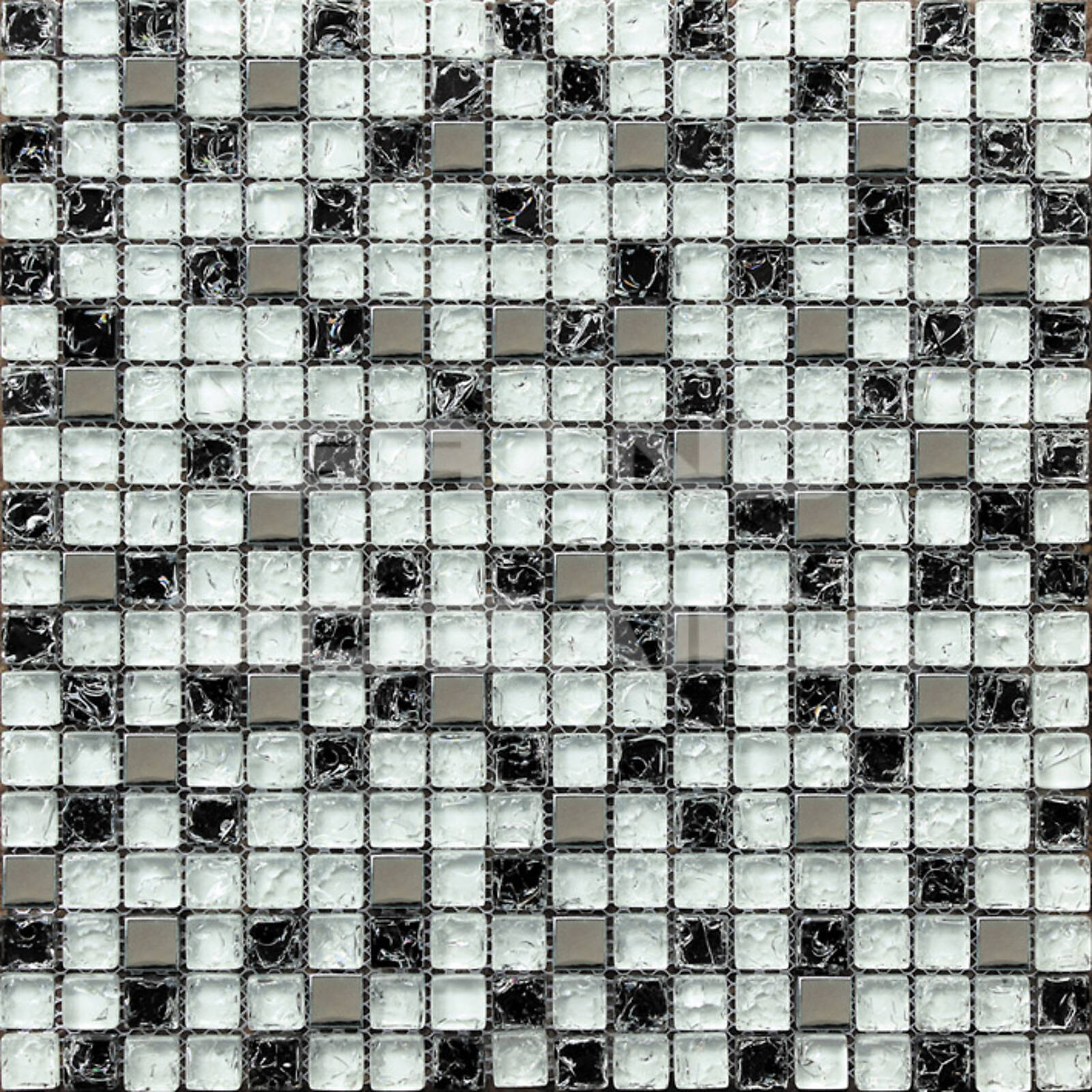 Стеклянная мозаика, серия Mix Imagine, цвет: белый, серебряный, черный, размер чипа (мм): 15x15