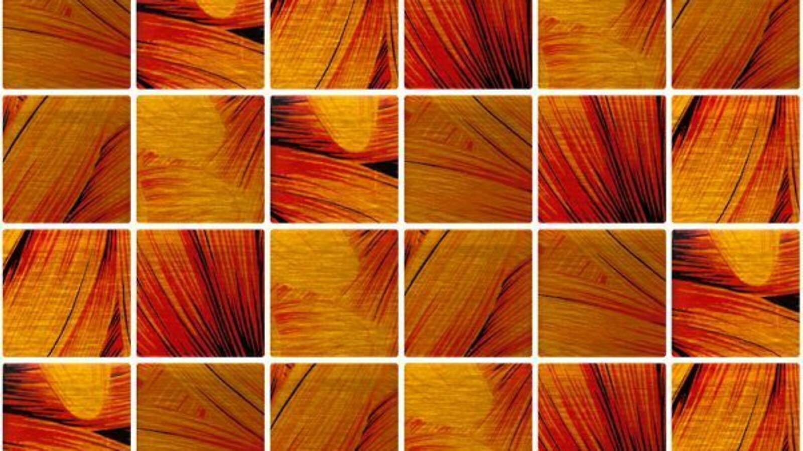 Стеклянная мозаика с орнаментом, серия Fantasy, цвет: оранжевый, размер чипа (мм): 48x48