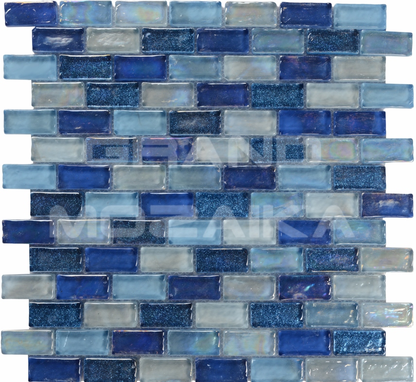 Стеклянная мозаика, серия CrystaSol, цвет: голубой, синий, размер чипа (мм): 20x42
