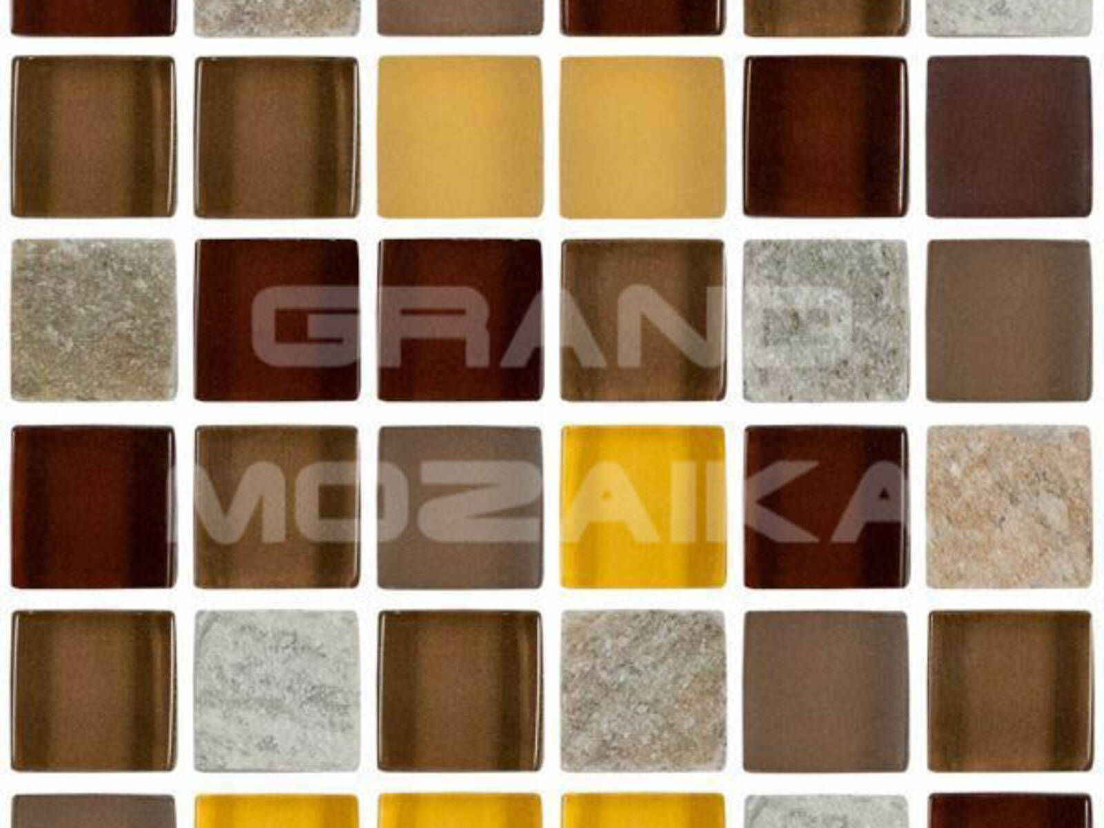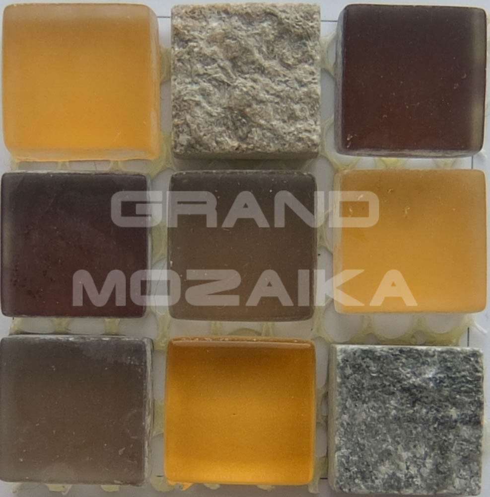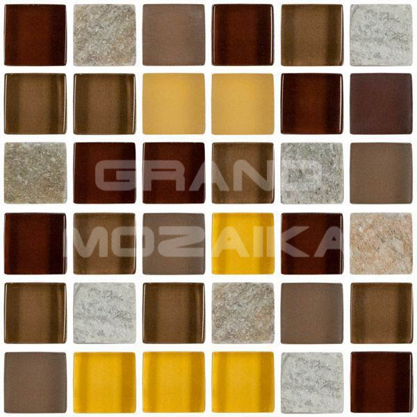 Мозаика из стекла и камня, серия Pantheon, цвет: коричневый, желтый, серый, размер чипа (мм): 15x15